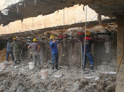 • 2014年南寧地鐵萬象城站切割、2015年春節期間南寧地鐵二號線玉洞支撐梁切割及風炮破除、2015年3月柳州紅光大橋匝道拆除、2015百色臨時支座水鉆排孔切割、繩鋸切割、2016南寧地鐵3號線博藝站支撐梁、腰梁、地連墻、樁柱切割等等,每一次的施工,我們的施工人員都獲得極大的經驗提升。